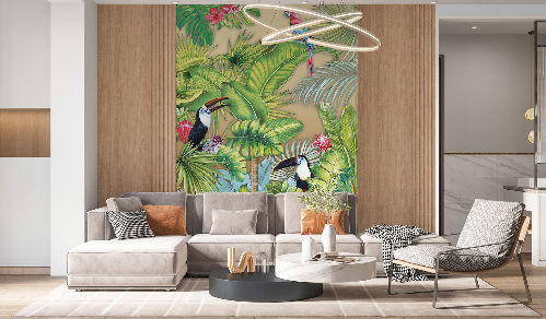 Это джунгли, прочувствуйте их настроение! В новой коллекции вы найдёте панорамные тропические сюжеты, поражающие своей глубокой «живой» перспективой, тщательной прорисовкой и цветовой гармонией. Каждый сюжет – это возможность стать ближе к дикой природе: почувствовать освежающую прохладу тенистых зарослей или палящий  полуденный зной, встречать рассветы и закаты в компании изящных фламинго, игривых попугаев и обитателей дикой фауны.
